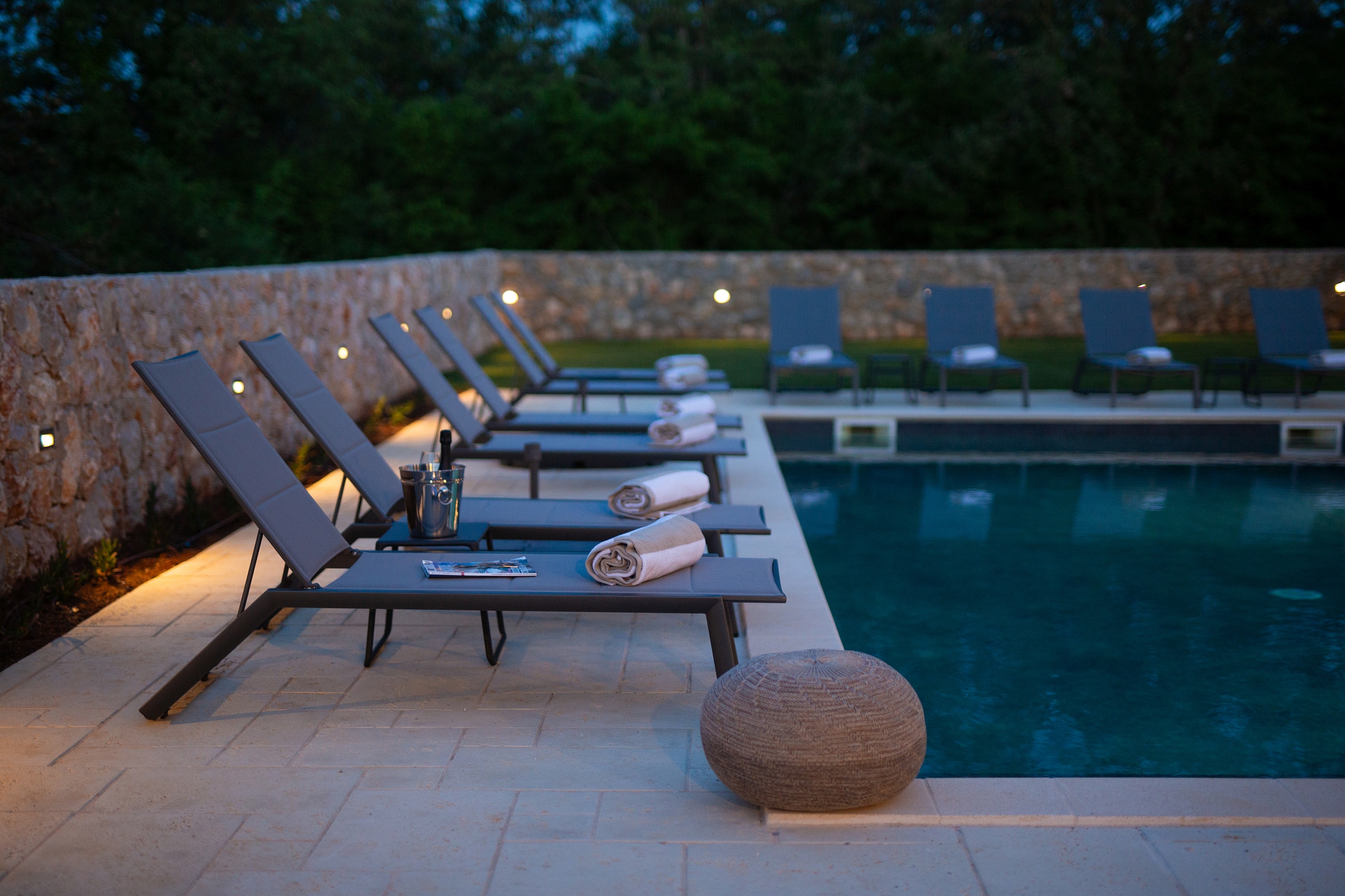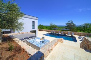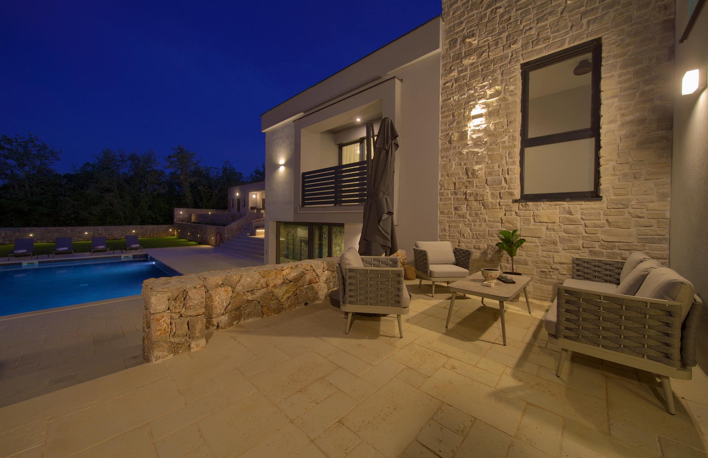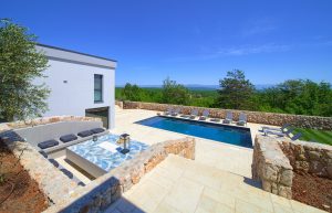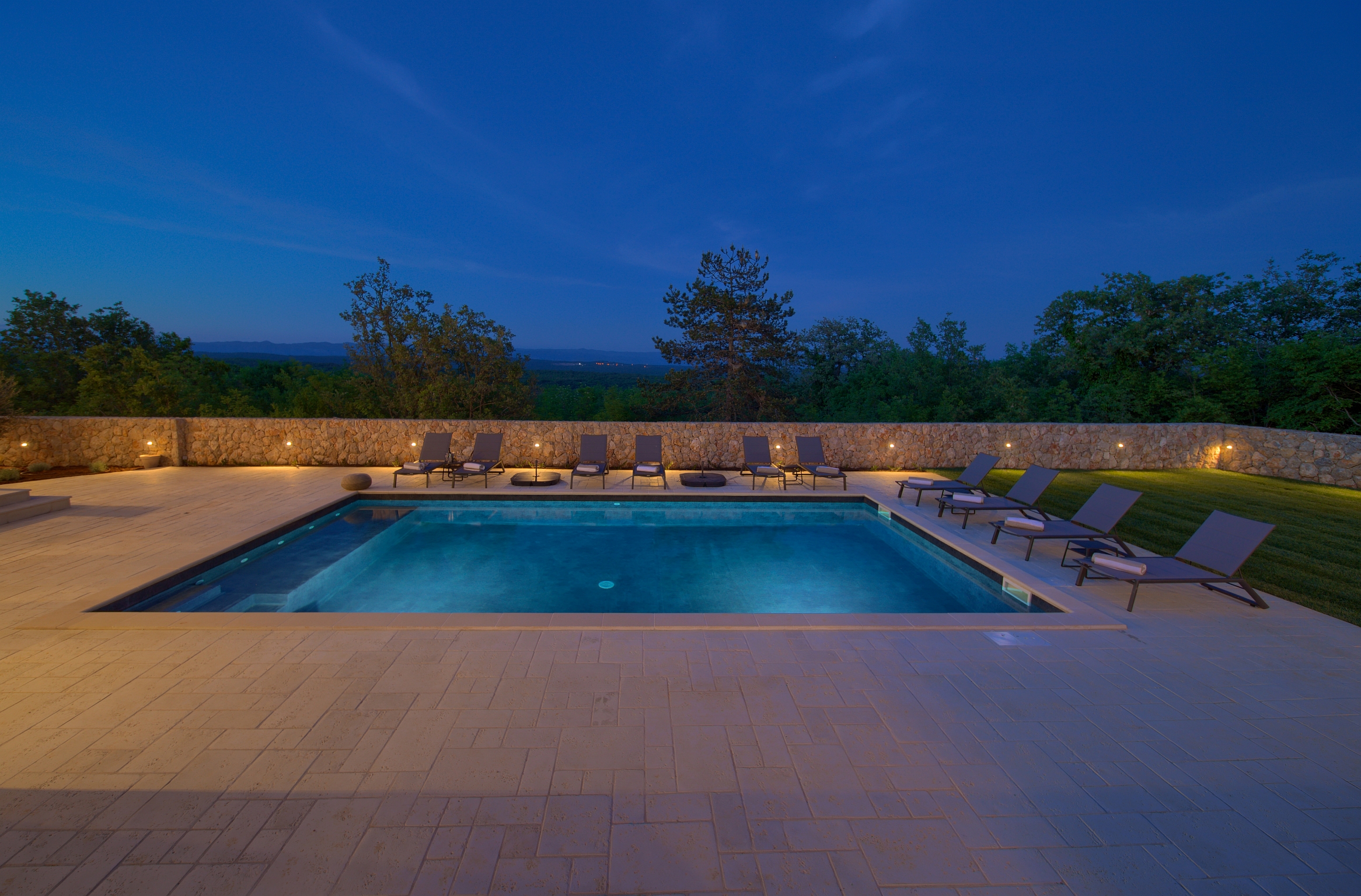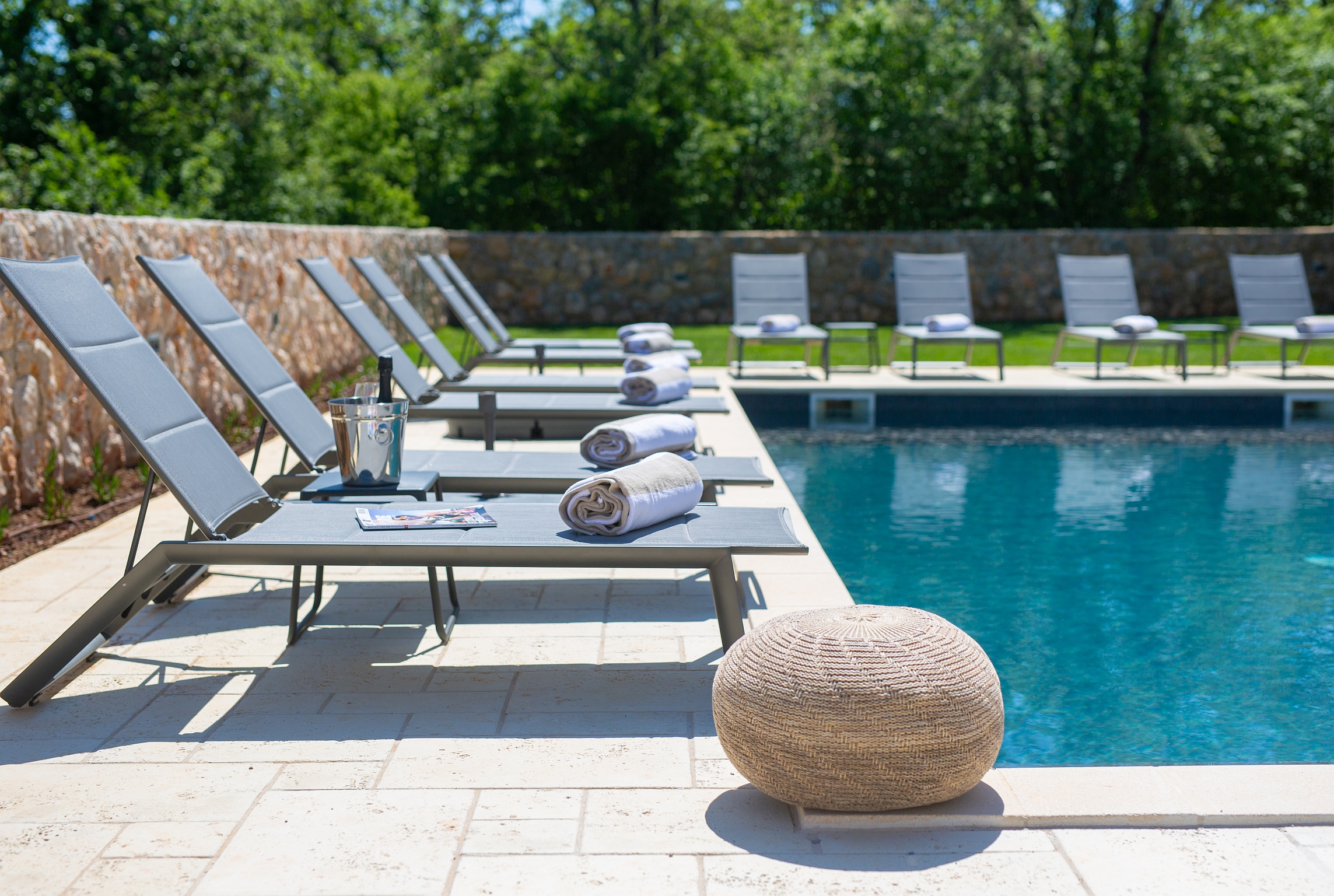 Bazen 50m2 / grijani - sjenica s roštiljem i vanjskom kuhinjom - stol za blagovanje za 12 osoba - sunčalište s 10 ležaljki - 4 suncobrana - travnjak - lounge zona sa stolom i vanjskom kutnom garniturom - potpuno ograđeno dvorište - WiFi