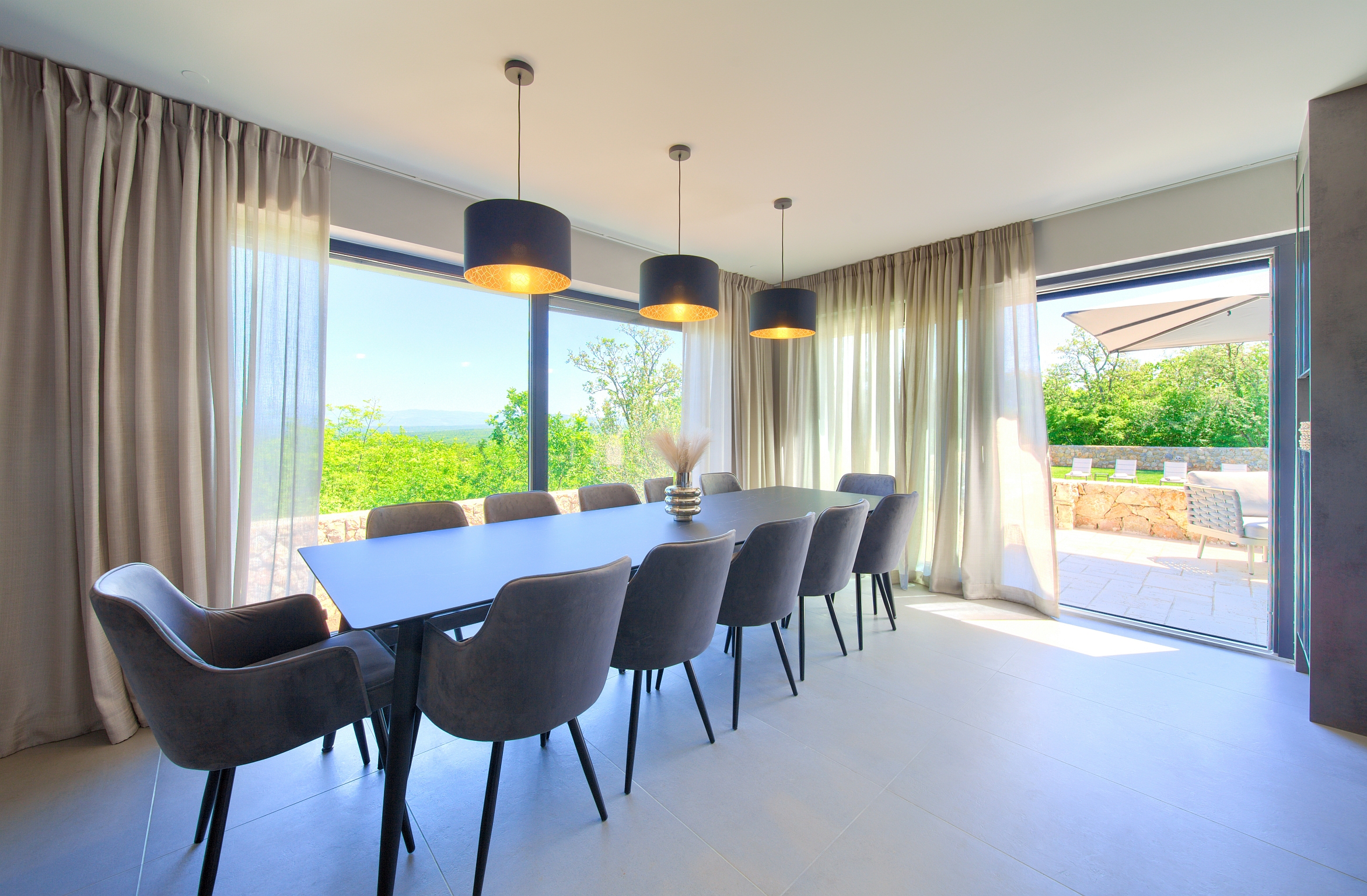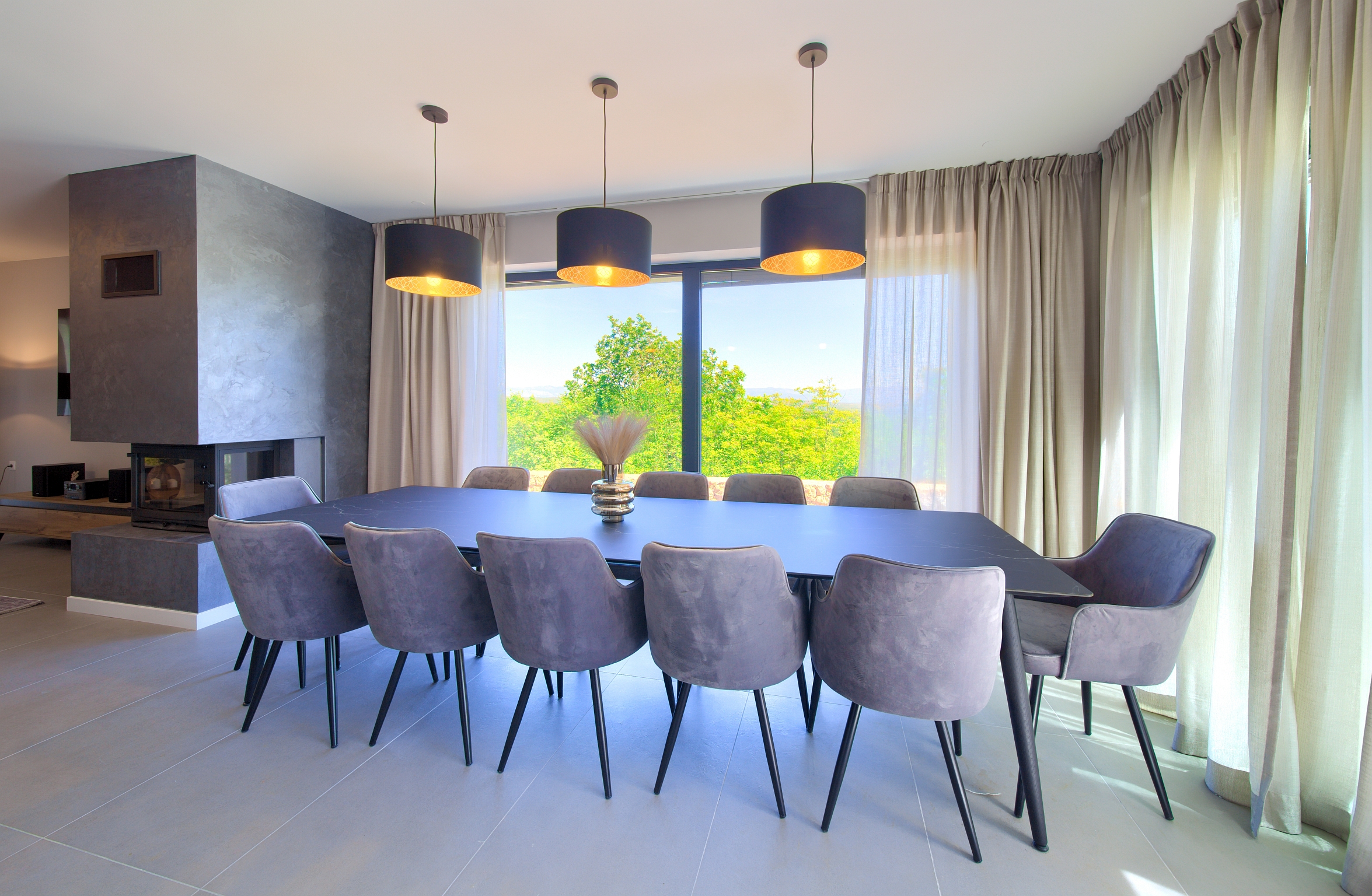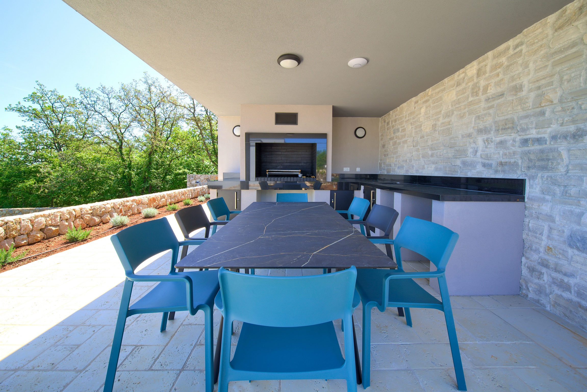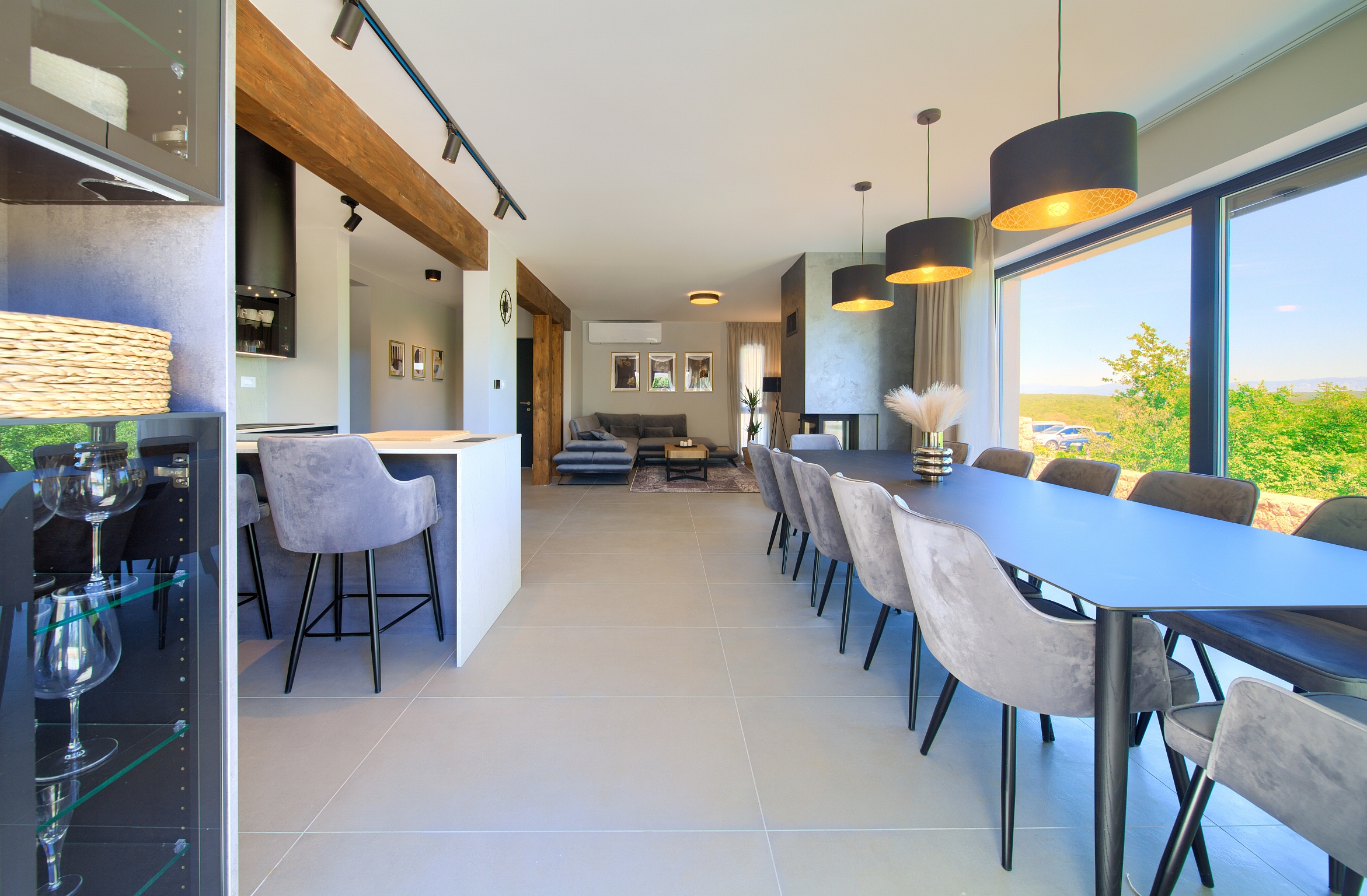 Potpuno opremljena kuhinja - blagovaonski stol 12 osoba - perilica posuđa - pećnica - ploča za kuhanje - frižider - zamrzivač - ledomat - kutna garnitura - Smart TV - HBO - Netflix - WiFi - klimatizacija