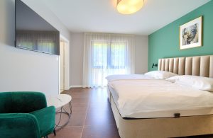 Kvadratura 17m2, dva kreveta dimenzija 90x200 cm koji su spojeni no po želji se mogu odvojiti. Soba sadrži ormar, noćne ormariće, stolić i toaletni/radni stol s foteljom. Soba ima balkon s pogledom na zelenilo i more.