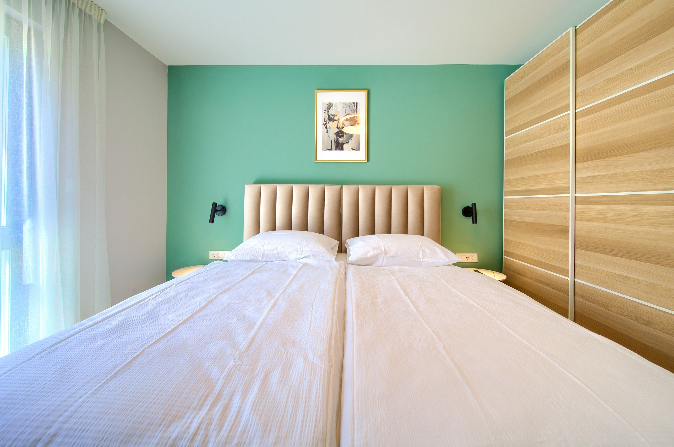 Kvadratura 16m2, dva kreveta dimenzija 90x200 cm koji su spojeni no po želji se mogu odvojiti. Soba sadrži ormar, noćne ormariće, stolić i toaletni/radni stol s foteljom.